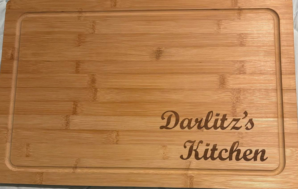 Charcuterie Board/Cutting Board, 18" x 12" Customizable with your desired text. Elevate your kitchen with our beautifully crafted 18-inch bamboo cutting board, featuring a generous 12-inch width for ample workspace. Made from premium bamboo, this cutting board combines durability with eco-friendly appeal. Personalize it with laser engraving to create a unique gift or a special addition to your own kitchen. Perfect for chopping, slicing, and serving, it adds a touch of elegance and functionality to any culinary space. Customize your board with names, dates, or special messages to make it truly one-of-a-kind.